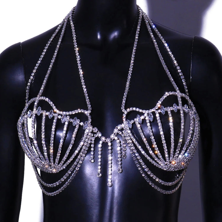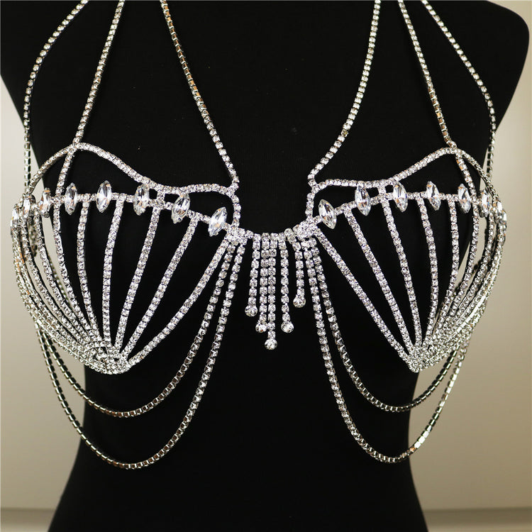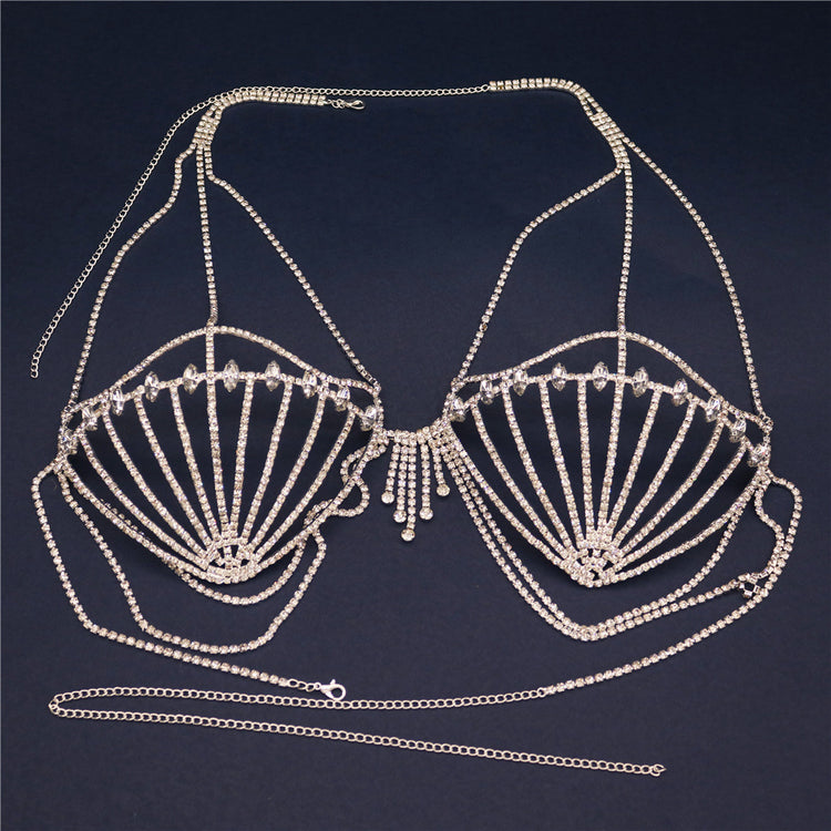 Women's Fashion Accessories Shell Rhinestone Bra Fringe Body Chain